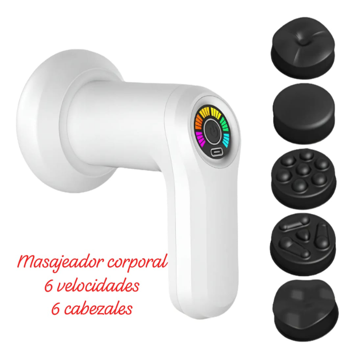 Masajeador con 5 cabezales intercambiables y 6 vibraciones diferentes